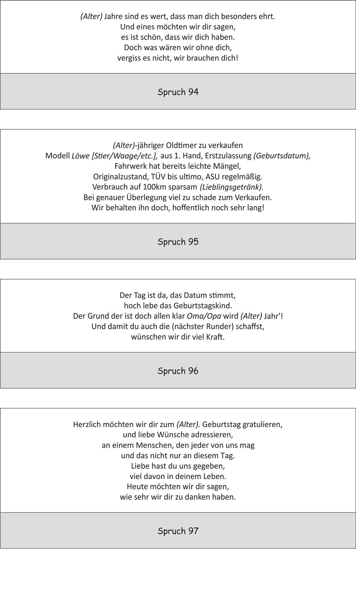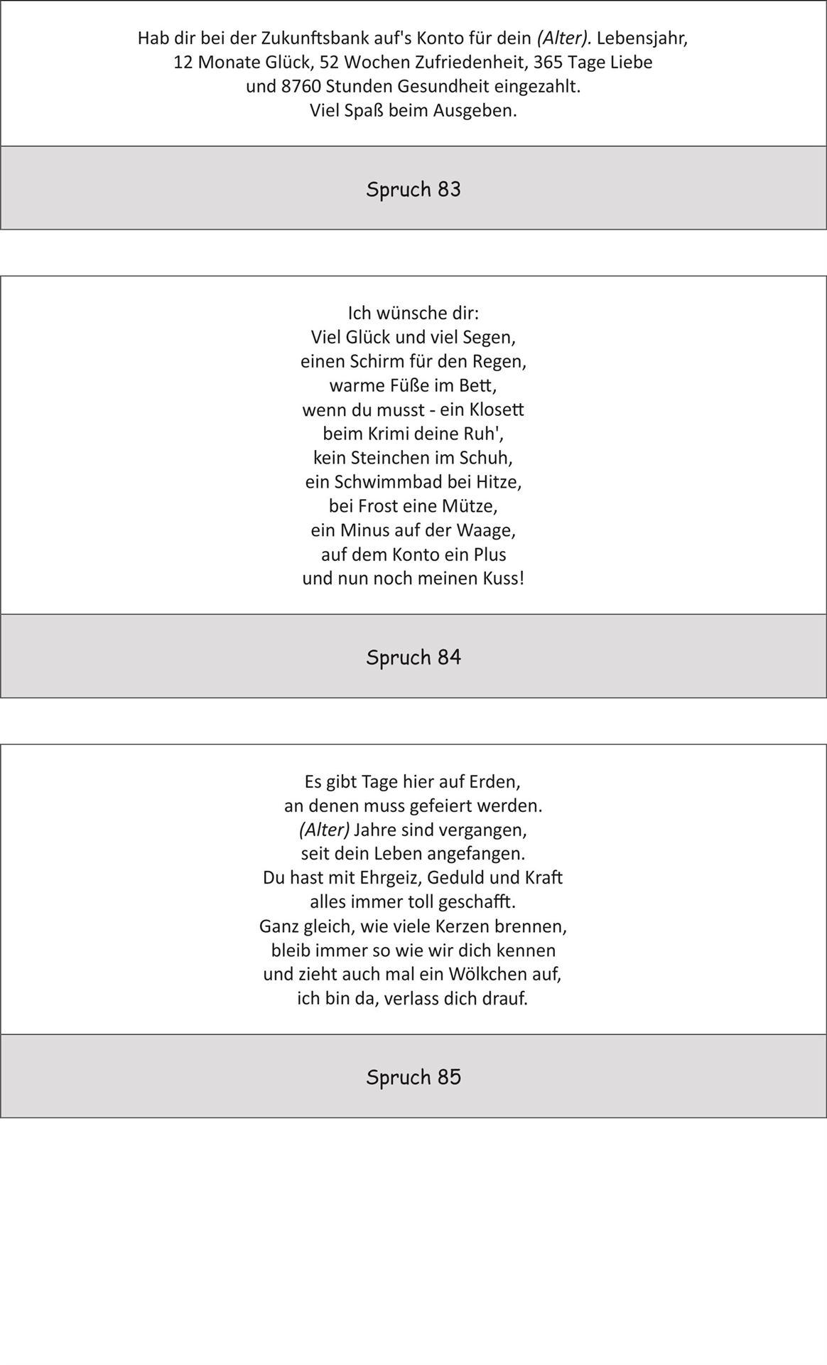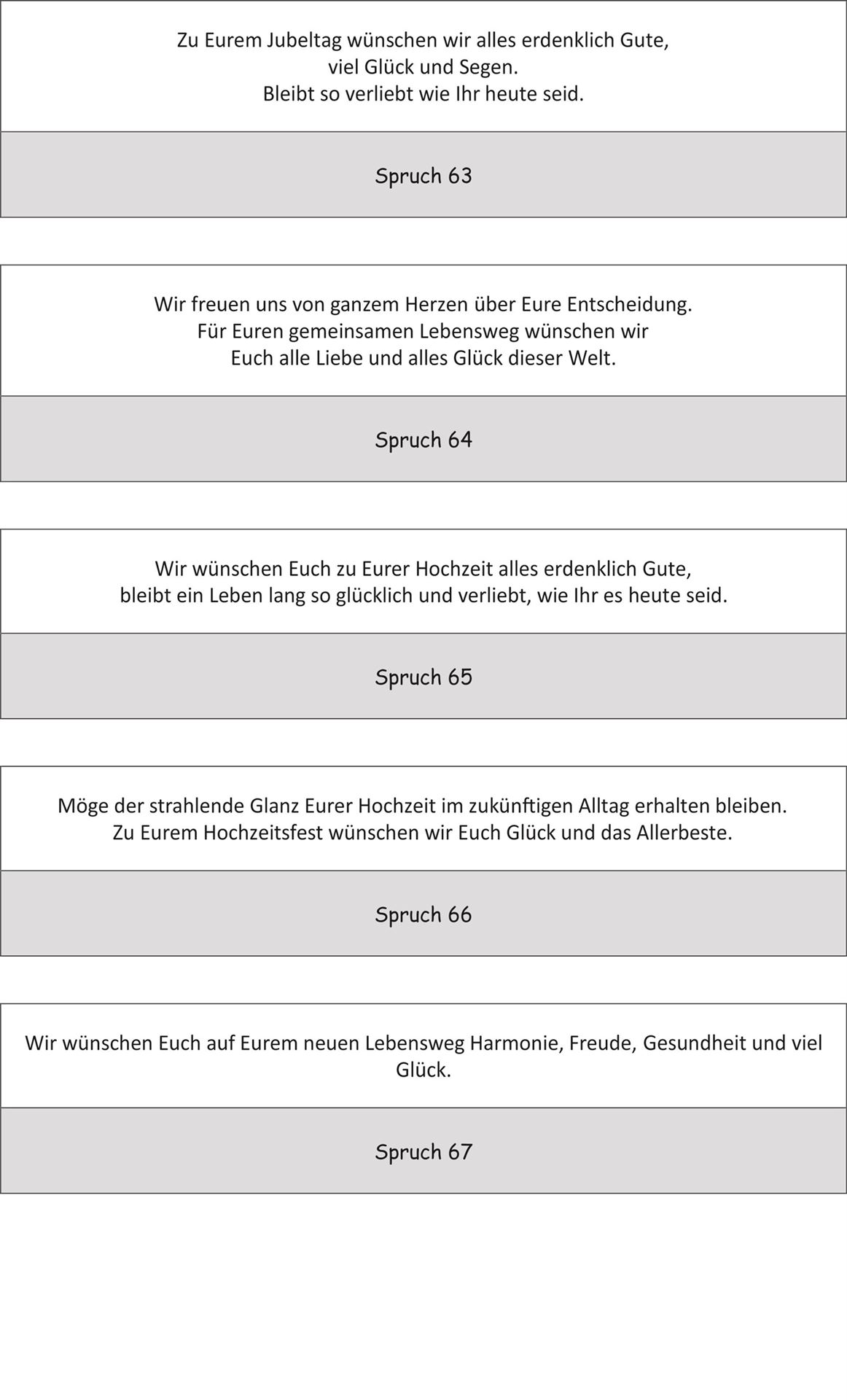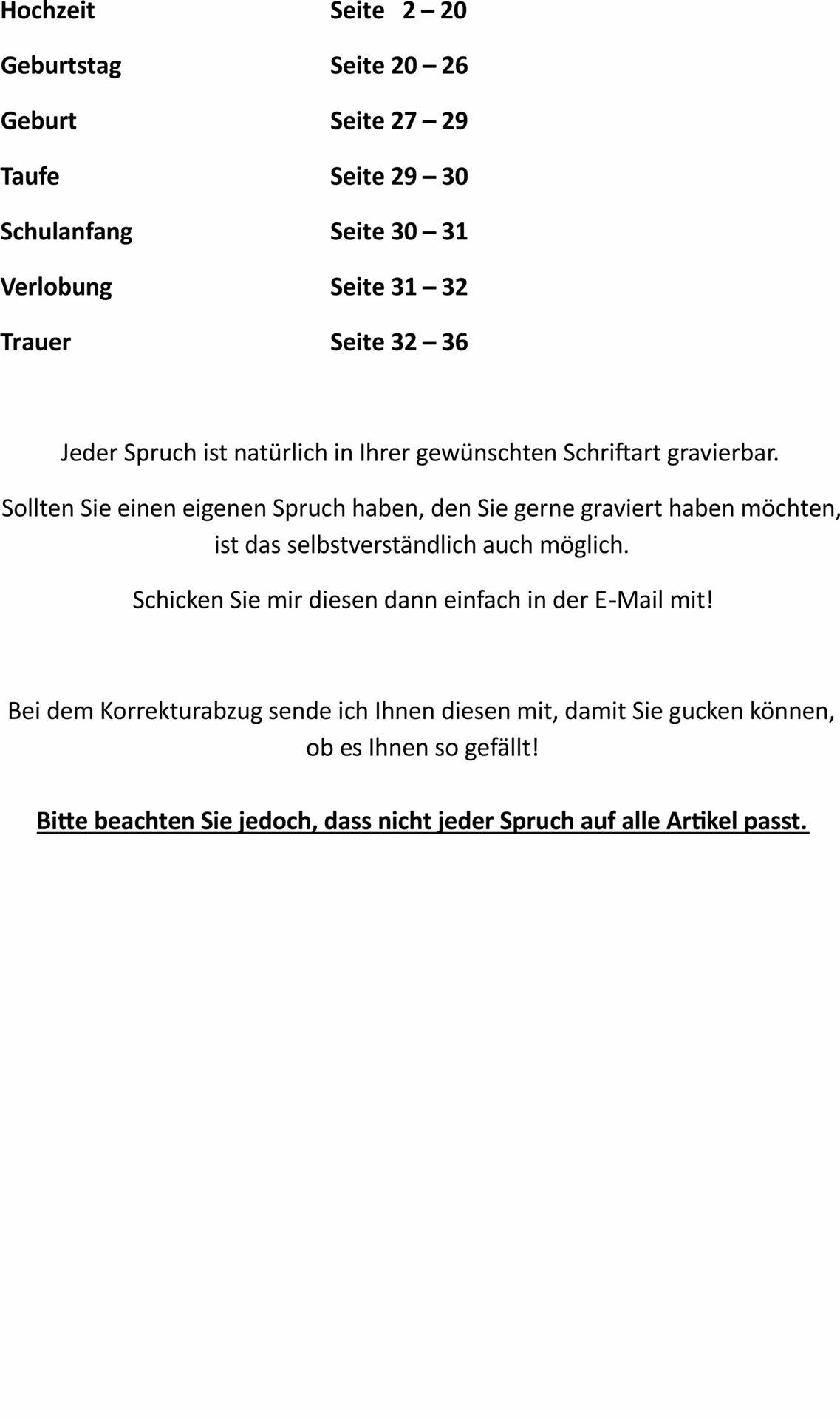 Bitte beachten Sie jedoch, dass nicht jeder Spruch auf alle Artikel passt.