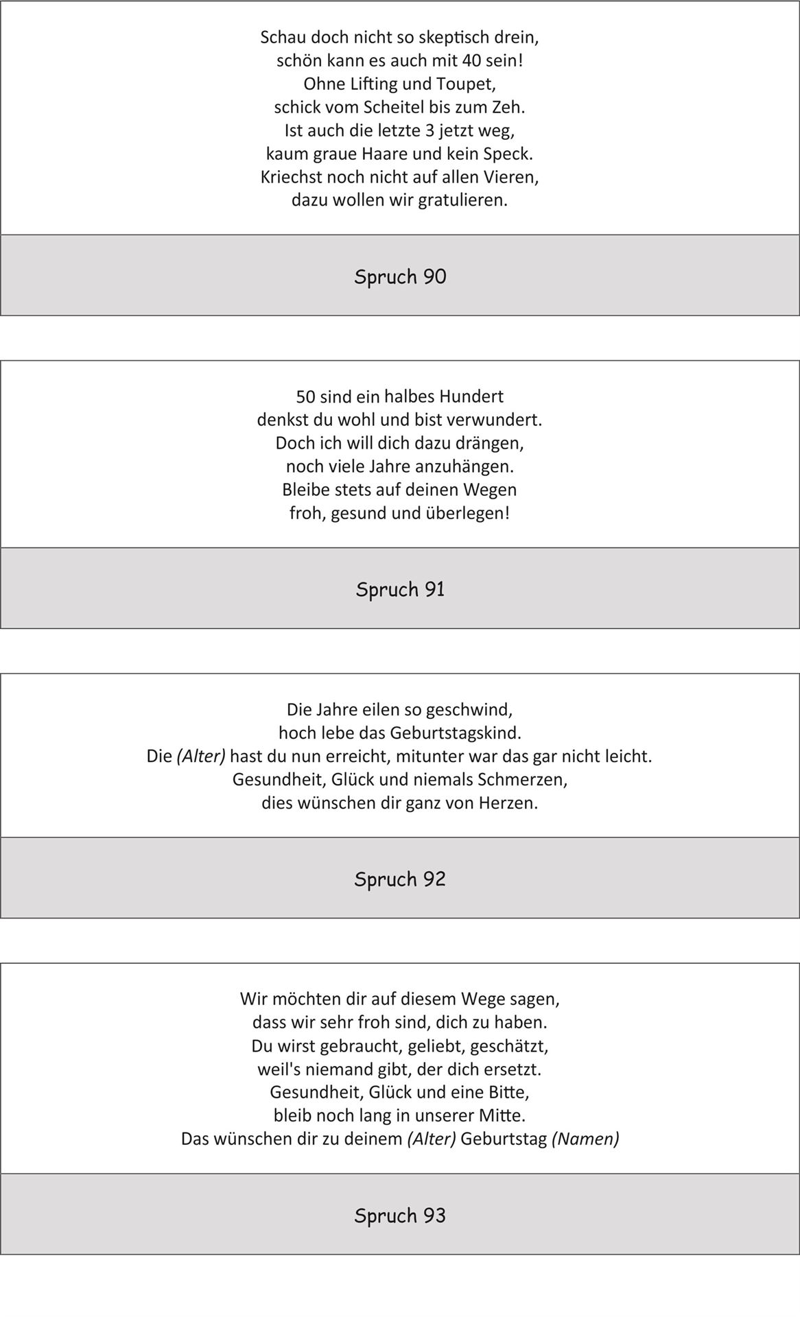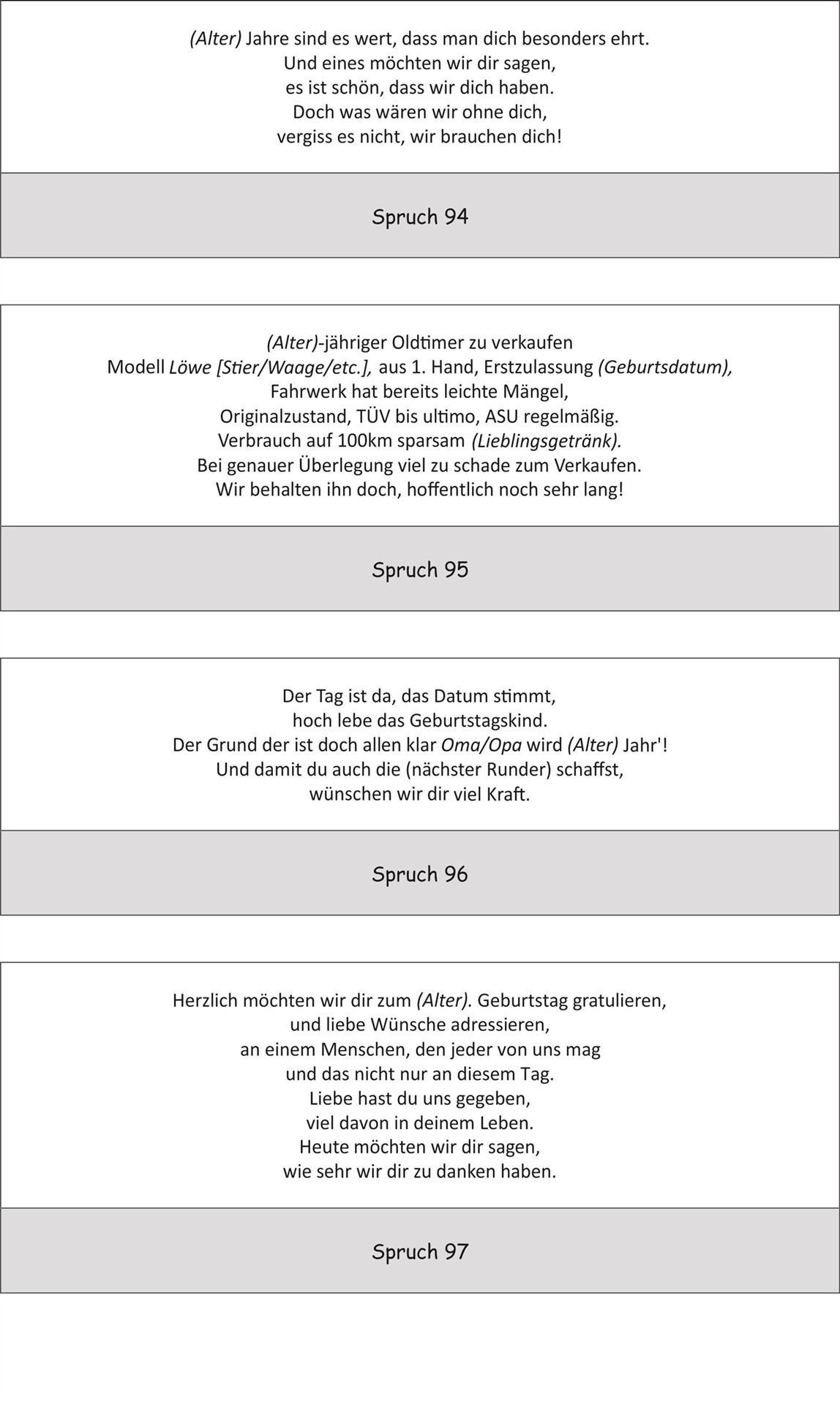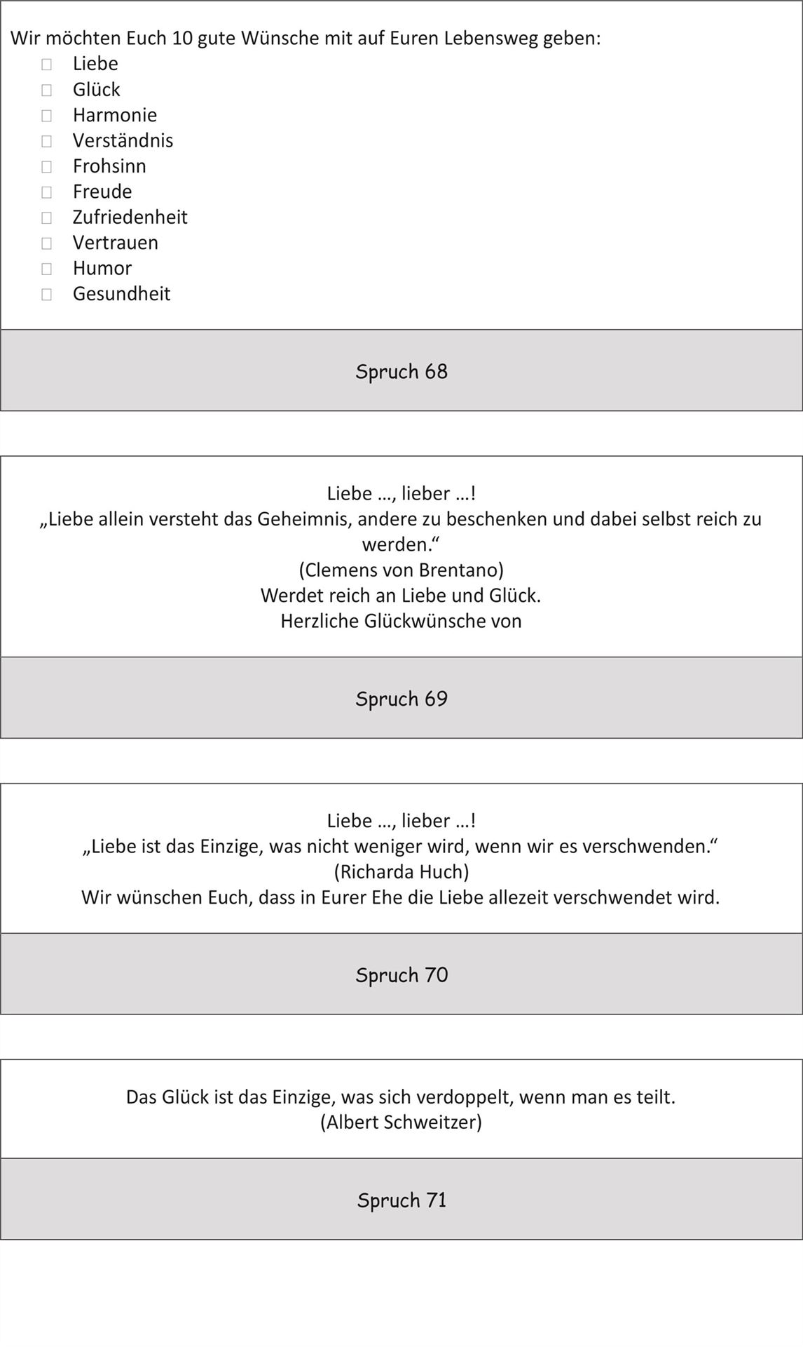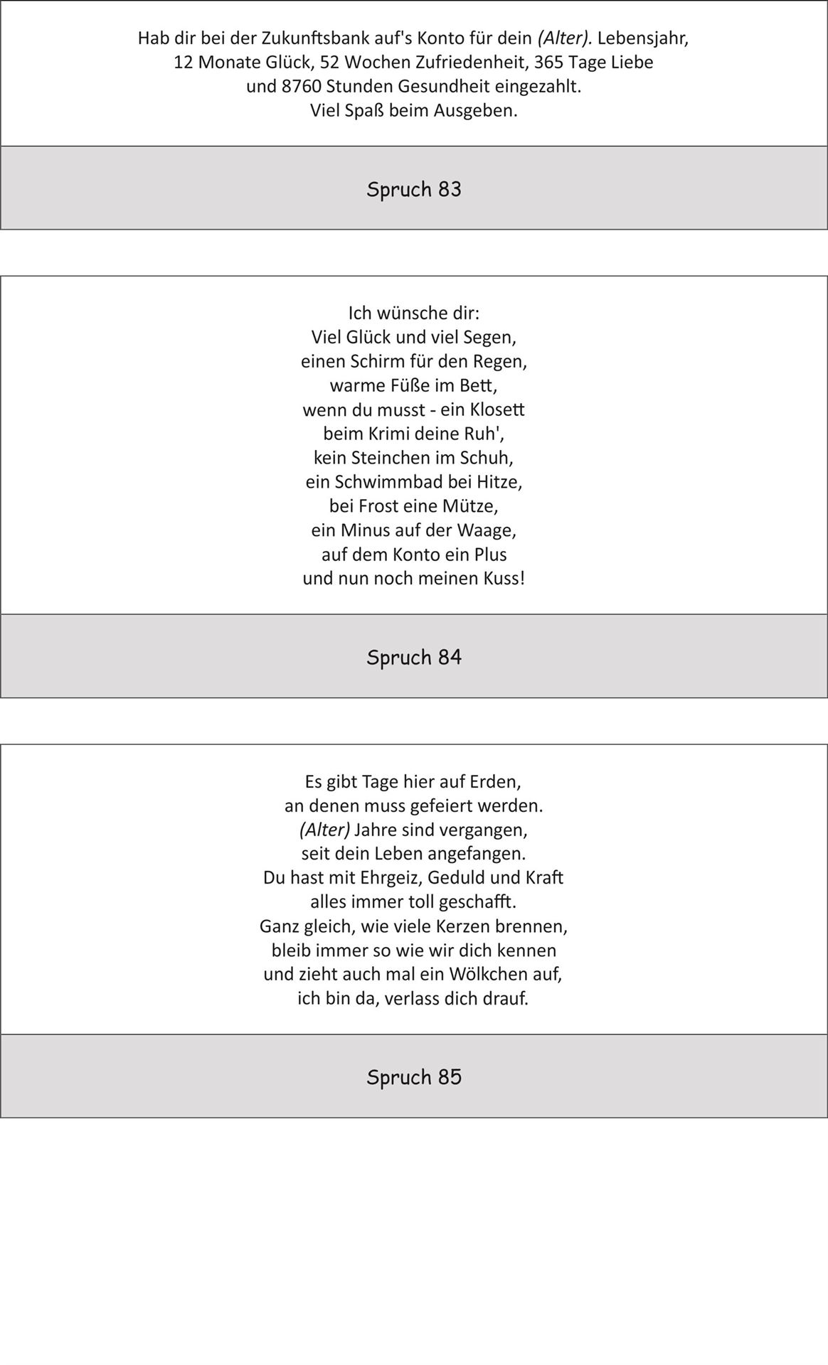 Bitte beachten Sie jedoch, dass nicht jeder Spruch auf alle Artikel passt.