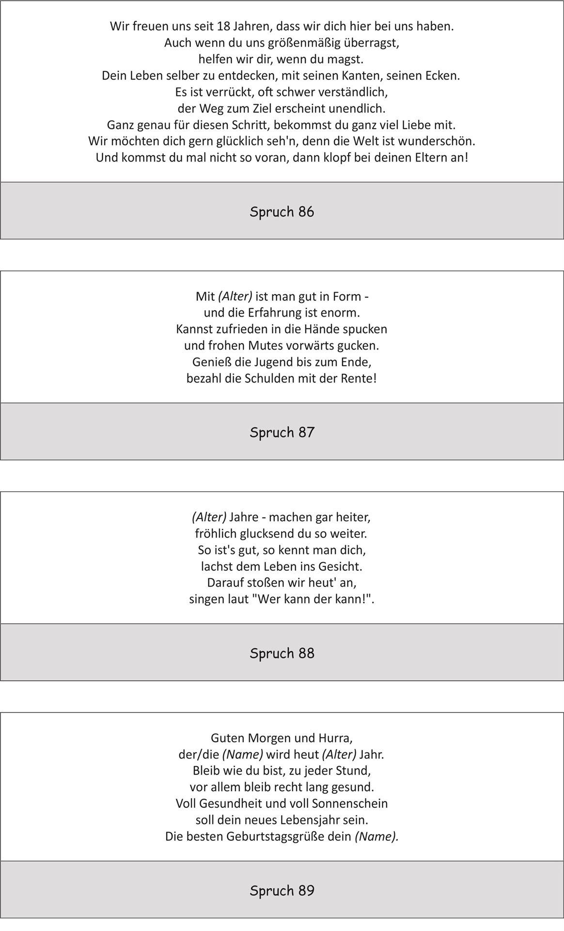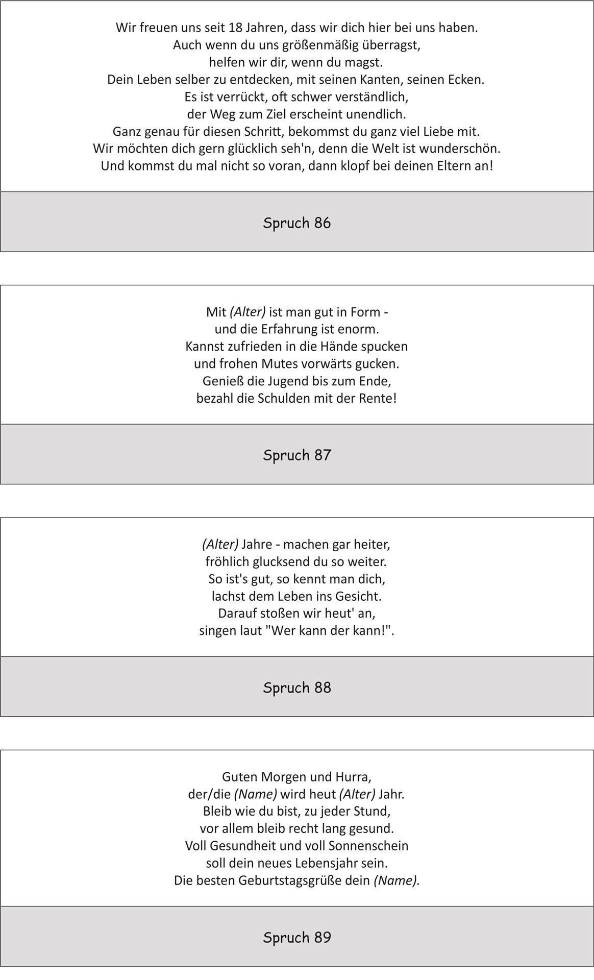 Jeder Spruch ist natürlich in Ihrer gewünschten Schriftart gravierbar.